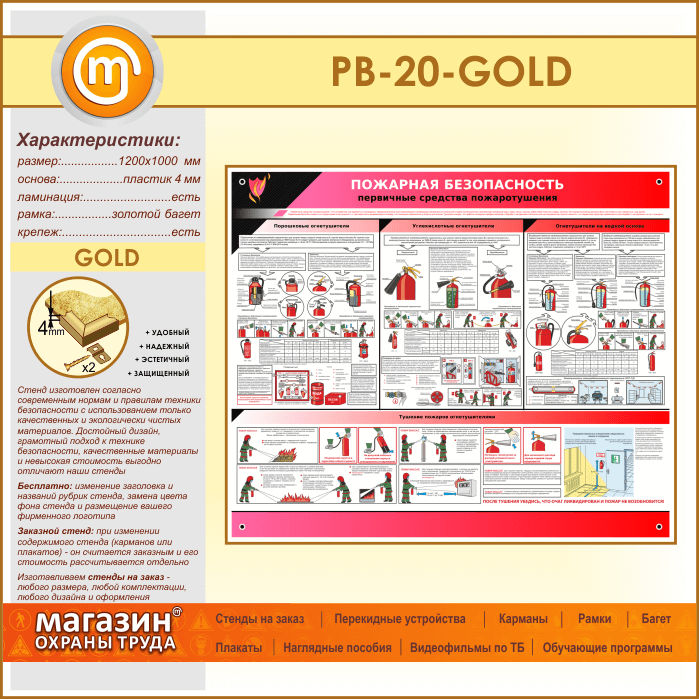Стенд «Пожарная безопасность. Первичные средства пожаротушения» (PB-20-GOLD) в Бердске купить