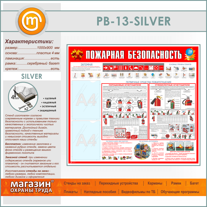Стенд «Пожарная безопасность» с 2 карманами (PB-13-SILVER) в Бердске купить
