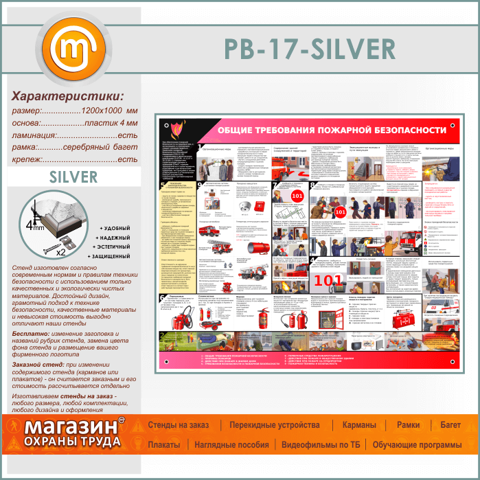 Стенд «Общие требования пожарной безопасности» (PB-17-SILVER) в Бердске купить