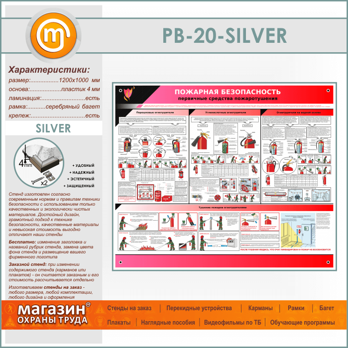Стенд «Пожарная безопасность. Первичные средства пожаротушения» (PB-20-SILVER) в Бердске купить