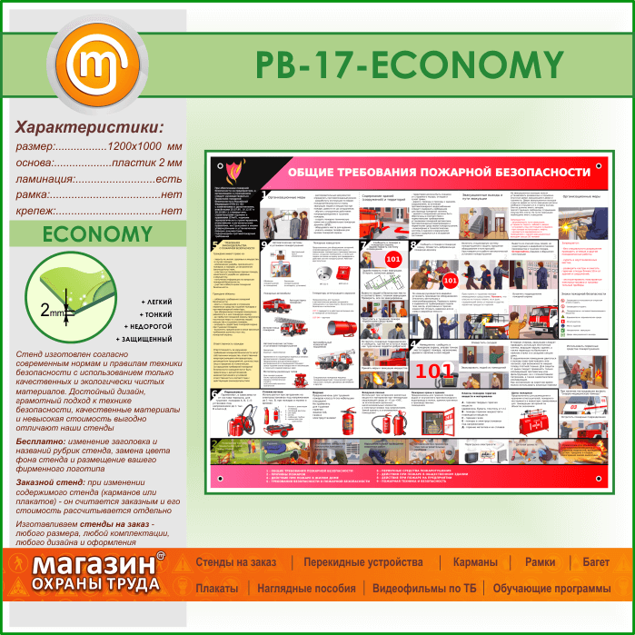 Стенд «Общие требования пожарной безопасности» (PB-17-ECONOMY) в Бердске купить