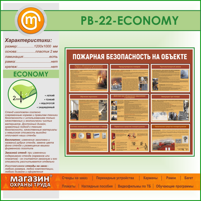 Стенд «Пожарная безопасность на объекте» (PB-22-ECONOMY) в Бердске купить