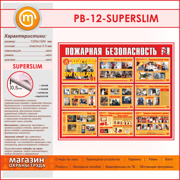 Стенд «Пожарная безопасность. Действия при пожаре» (PB-12-SUPERSLIM) в Бердске купить
