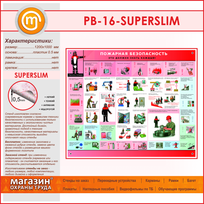 Стенд «Пожарная безопасность. Это должен знать каждый» (PB-16-SUPERSLIM) в Бердске купить