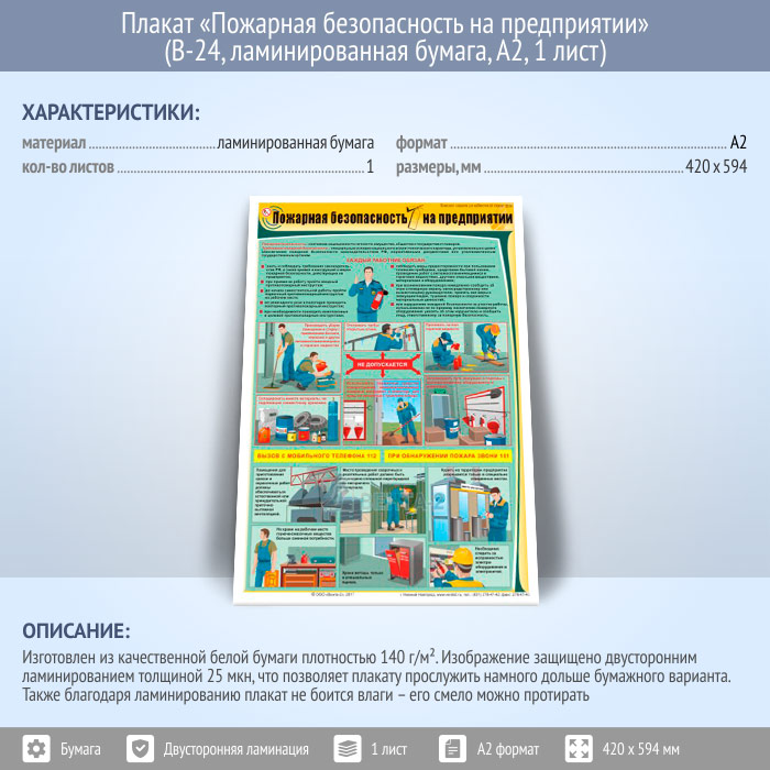 Плакат «Пожарная безопасность на предприятии» (В-24, ламинированная бумага, А2, 1 лист) в Бердске купить