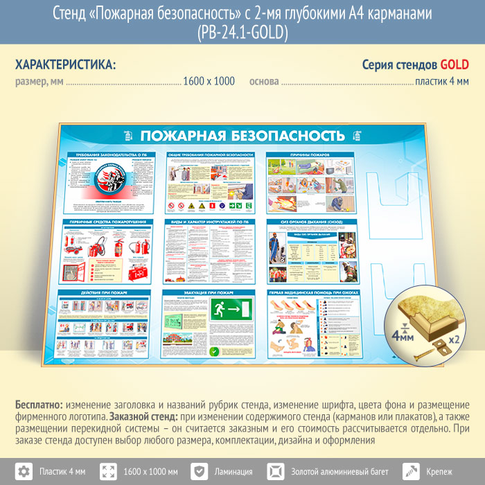 Стенд «Пожарная безопасность» с 2-мя глубокими А4 карманами (PB-24.1-GOLD) в Бердске купить