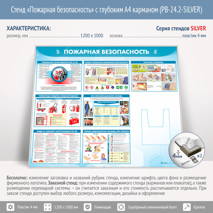 Стенд «Пожарная безопасность» с глубоким А4 карманом (PB-24.2-SILVER) в Бердске купить
