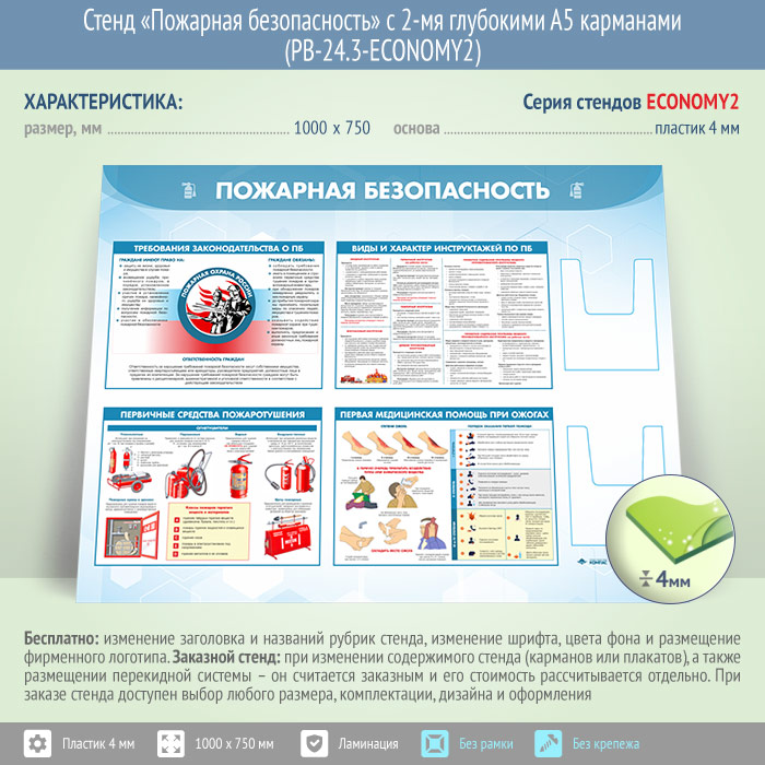 Стенд «Пожарная безопасность» с 2-мя глубокими А5 карманами (PB-24.3-ECONOMY2) в Бердске купить
