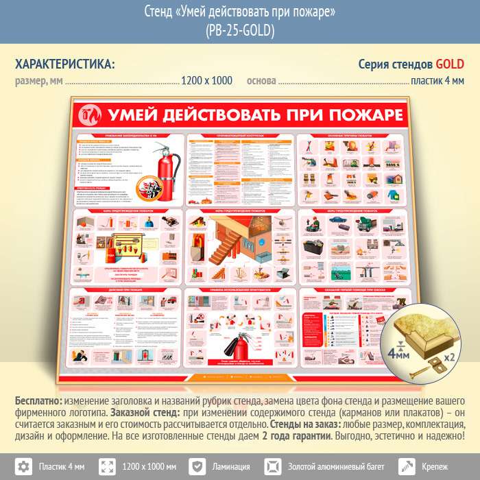 Стенд «Умей действовать при пожаре» (PB-25-GOLD) в Бердске купить
