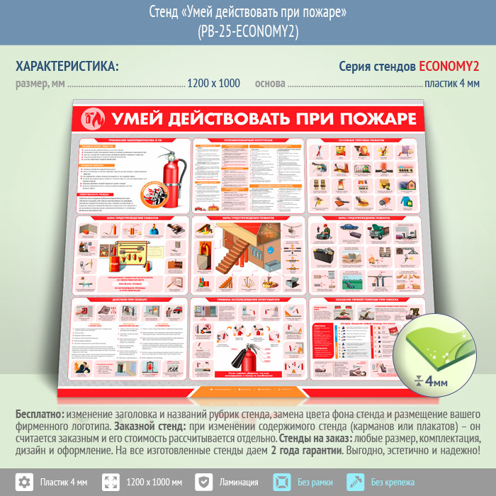 Стенд «Умей действовать при пожаре» (PB-25-ECONOMY2) в Бердске купить