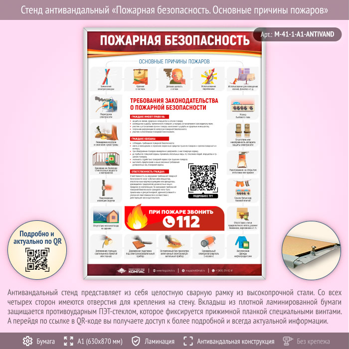 Стенд антивандальный «Пожарная безопасность. Основные причины пожаров» (M-41-1-А1-ANTIVAND) в Бердске купить