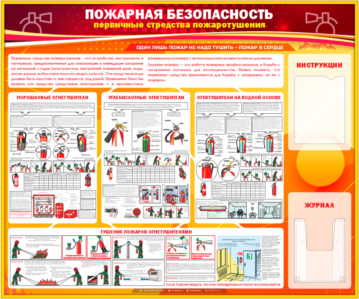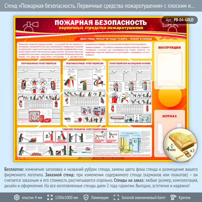 Стенд «Пожарная безопасность. Первичные средства пожаротушения» с плоским и объемным карманами (PB-04-GOLD) в Бердске купить
