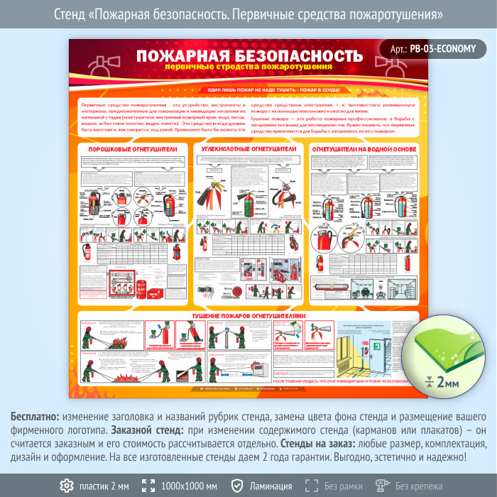 Стенд «Пожарная безопасность. Первичные средства пожаротушения» (PB-03-ECONOMY) в Бердске купить