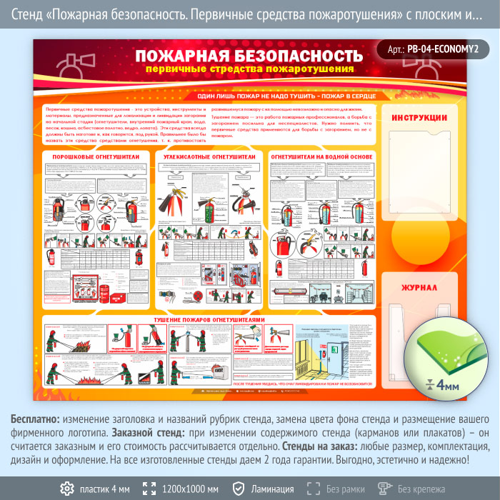 Стенд «Пожарная безопасность. Первичные средства пожаротушения» с плоским и объемным карманами (PB-04-ECONOMY2) в Бердске купить