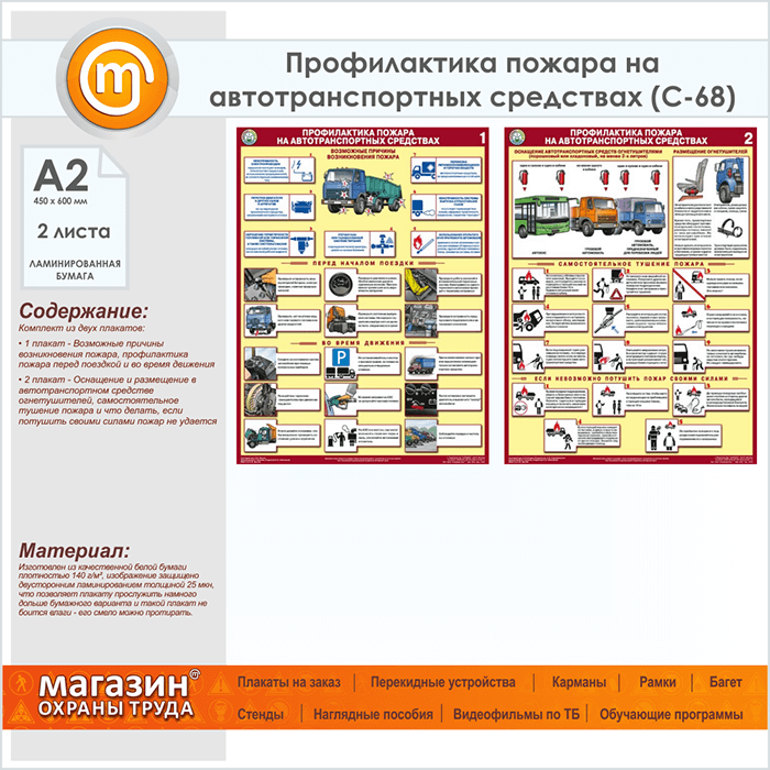 Плакаты «Профилактика пожара на автотранспортных средствах» (С-68, ламинированная бумага, А2, 2 листа) в Бердске купить