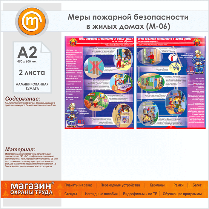 Плакаты «Меры пожарной безопасности в жилых домах» (М-06, ламинированная бумага, А2, 2 листа) в Бердске купить