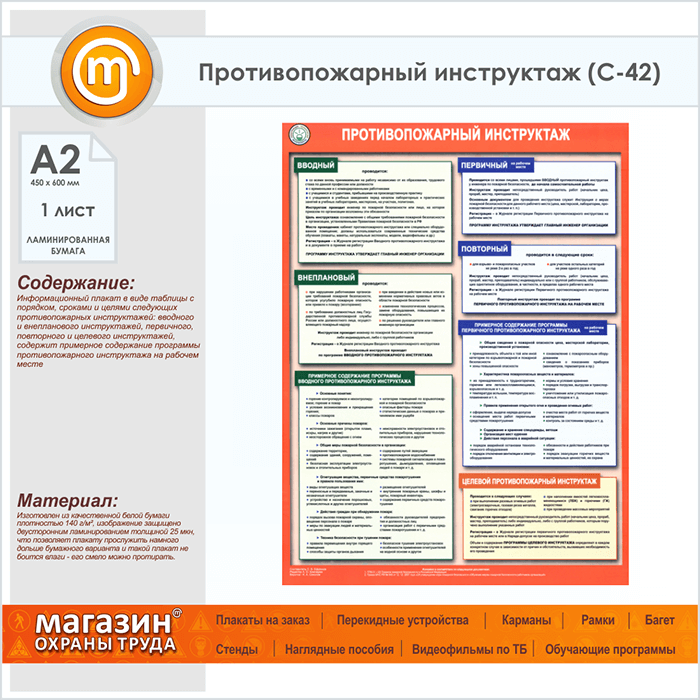Плакат «Противопожарный инструктаж» (С-42, ламинированная бумага, А2, 1 лист) в Бердске купить