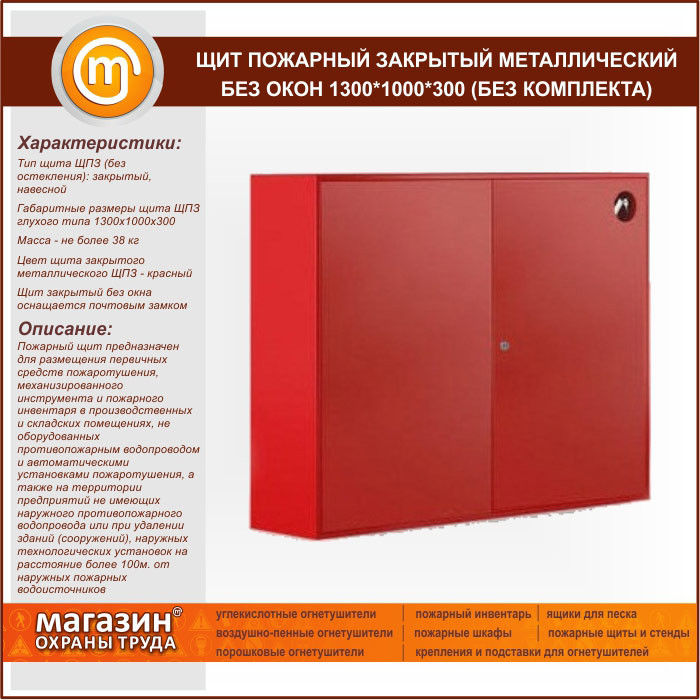 Щит пожарный закрытый металлический без окон 1300*1000*300 (без комплекта) в Бердске купить