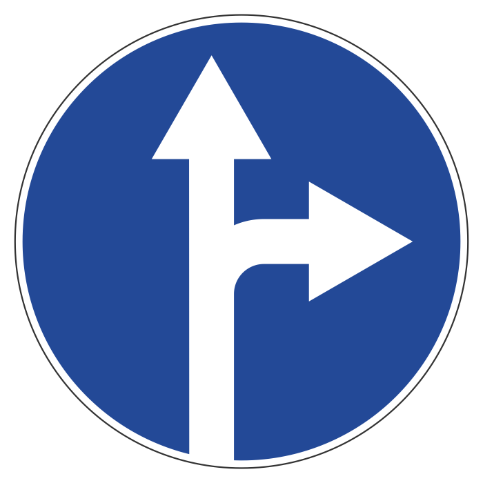 Дорожный знак 4.1.4 «Движение прямо или направо» (металл 0,8 мм, I типоразмер: диаметр 600 мм, С/О пленка: тип Б высокоинтенсивная) в Бердске купить