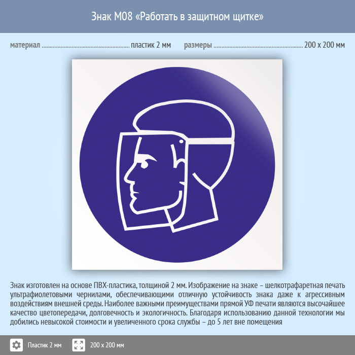 Знак M08 «Работать в защитном щитке» (пластик, 200х200 мм) в Бердске купить