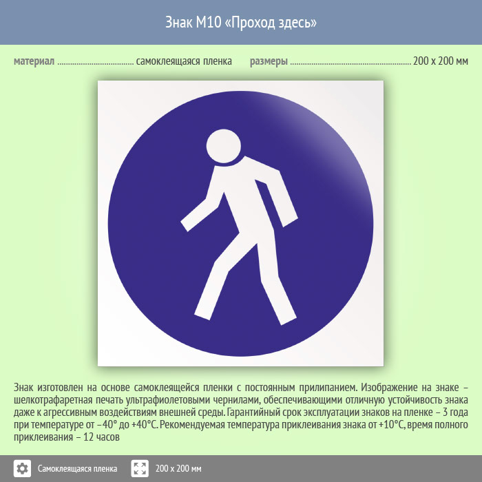 Знак M10 «Проход здесь» (пленка, 200х200 мм) в Бердске купить