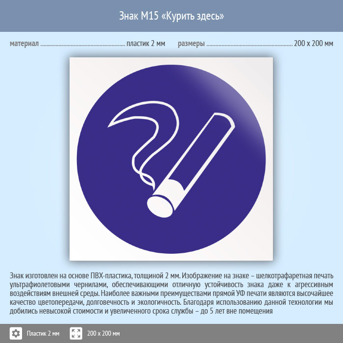 Знак M15 «Курить здесь» (исключен) (пластик, 200х200 мм) в Бердске купить