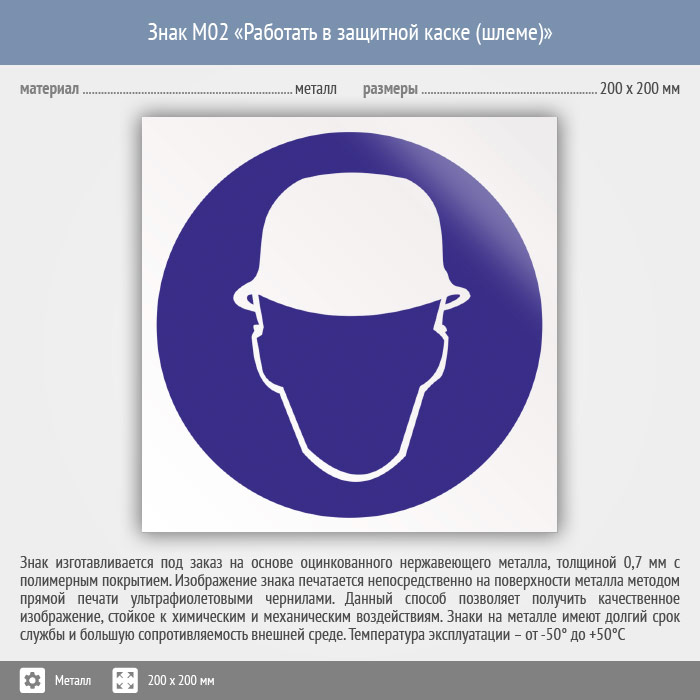Знак M02 «Работать в защитной каске (шлеме)» (металл, 200х200 мм) в Бердске купить