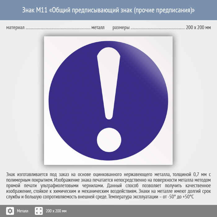 Знак M11 «Общий предписывающий знак (прочие предписания)» (металл, 200х200 мм) в Бердске купить
