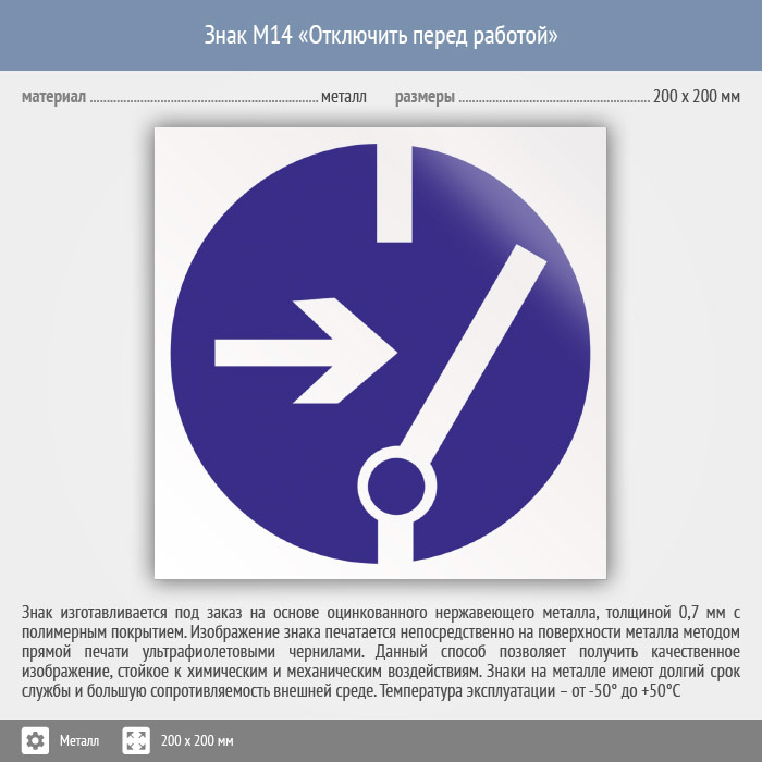 Знак M14 «Отключить перед работой» (металл, 200х200 мм) в Бердске купить