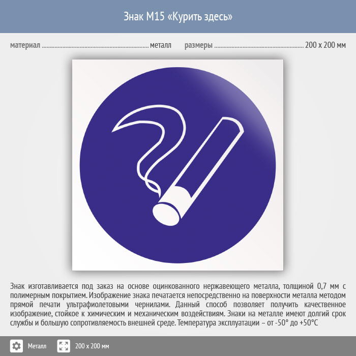 Знак M15 «Курить здесь» (исключен) (металл, 200х200 мм) в Бердске купить