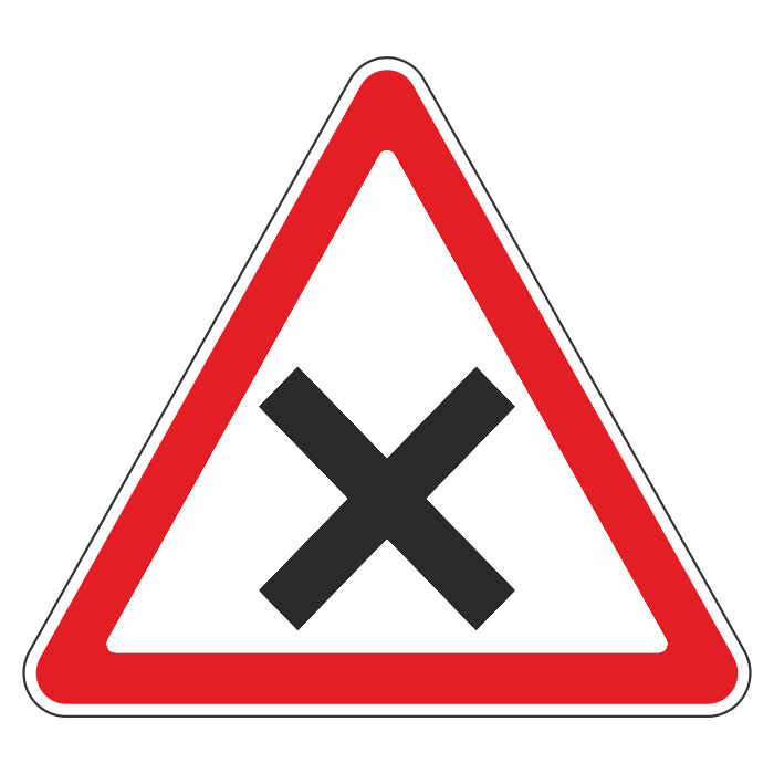 Дорожный знак 1.6 «Пересечение равнозначных дорог» (металл 0,8 мм, I типоразмер: сторона 700 мм, С/О пленка: тип А инженерная) в Бердске купить