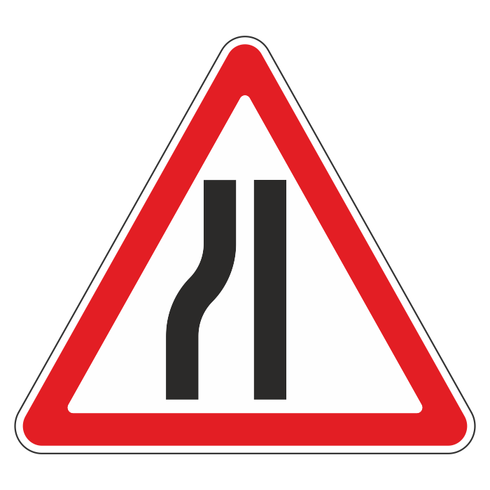 Дорожный знак 1.20.3 «Сужение дороги» (металл 0,8 мм, I типоразмер: сторона 700 мм, С/О пленка: тип А инженерная) в Бердске купить