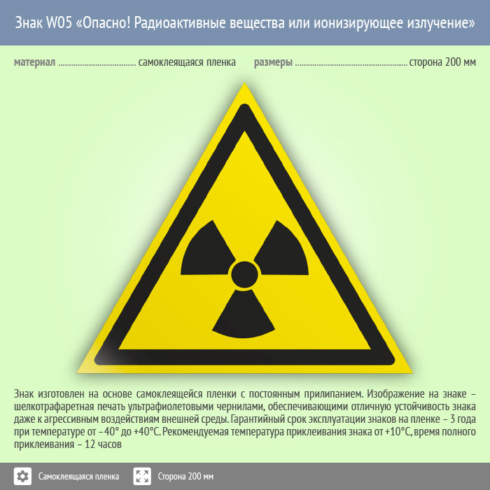 Знак W05 «Опасно! радиоактивные вещества или ионизирующее излучение» (пленка, сторона 200 мм) в Бердске купить