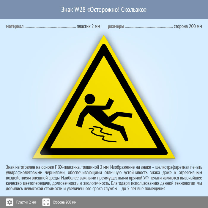 Знак W28 «Осторожно! скользко» (пластик, сторона 200 мм) в Бердске купить