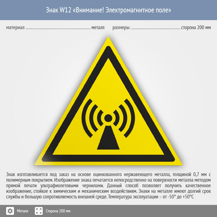 Знак W12 «Внимание! электромагнитное поле» (металл, сторона 200 мм) в Бердске купить