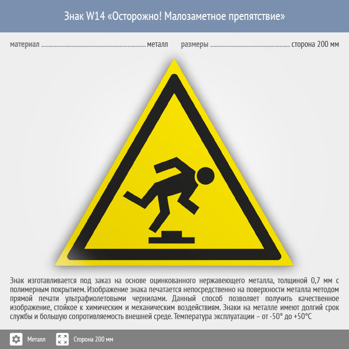 Знак W14 «Осторожно! малозаметное препятствие» (металл, сторона 200 мм) в Бердске купить
