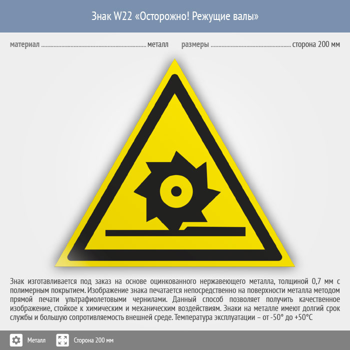 Знак W22 «Осторожно! режущие валы» (металл, сторона 200 мм) в Бердске купить
