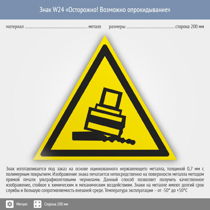 Знак W24 «Осторожно! возможно опрокидывание» (металл, сторона 200 мм) в Бердске купить