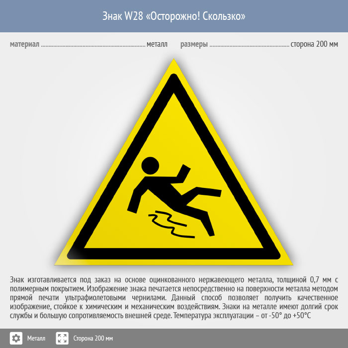Знак W28 «Осторожно! скользко» (металл, сторона 200 мм) в Бердске купить