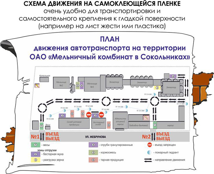Схема движения автотранспорта (1500х1000 мм, самоклеящаяся плёнка) в Бердске купить