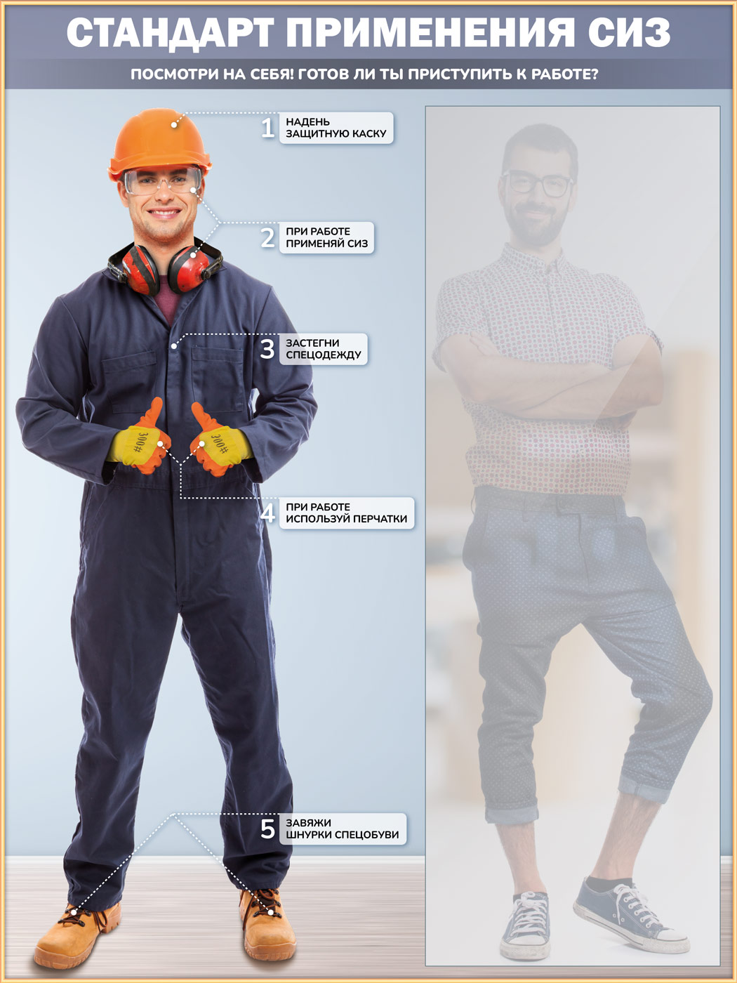 Стенд для демонстрации применения СИЗ с зеркалом, 1500х2000 мм в золотом багете (СПС-01-З) в Бердске купить