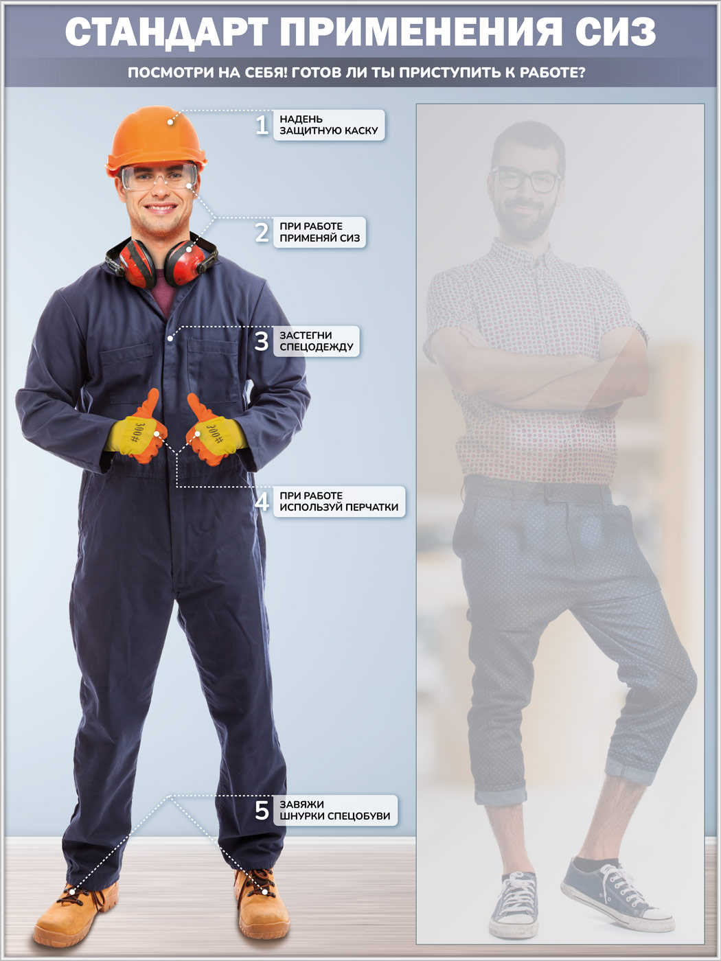 Стенд для демонстрации применения СИЗ с зеркалом, 1500х2000 мм в серебряном багете (СПС-01-С) в Бердске купить