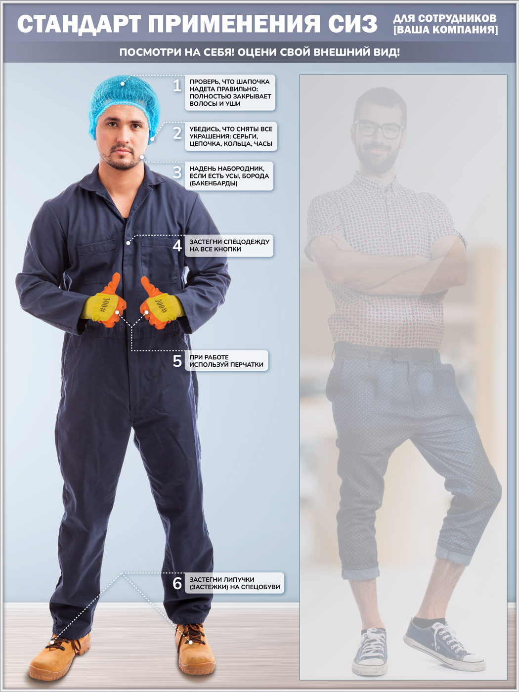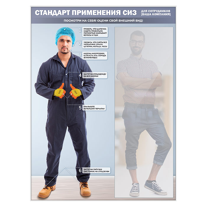 Стенд для демонстрации применения СИЗ с зеркалом, 1500х2000 мм в серебряном багете (СПС-02-С) в Бердске купить