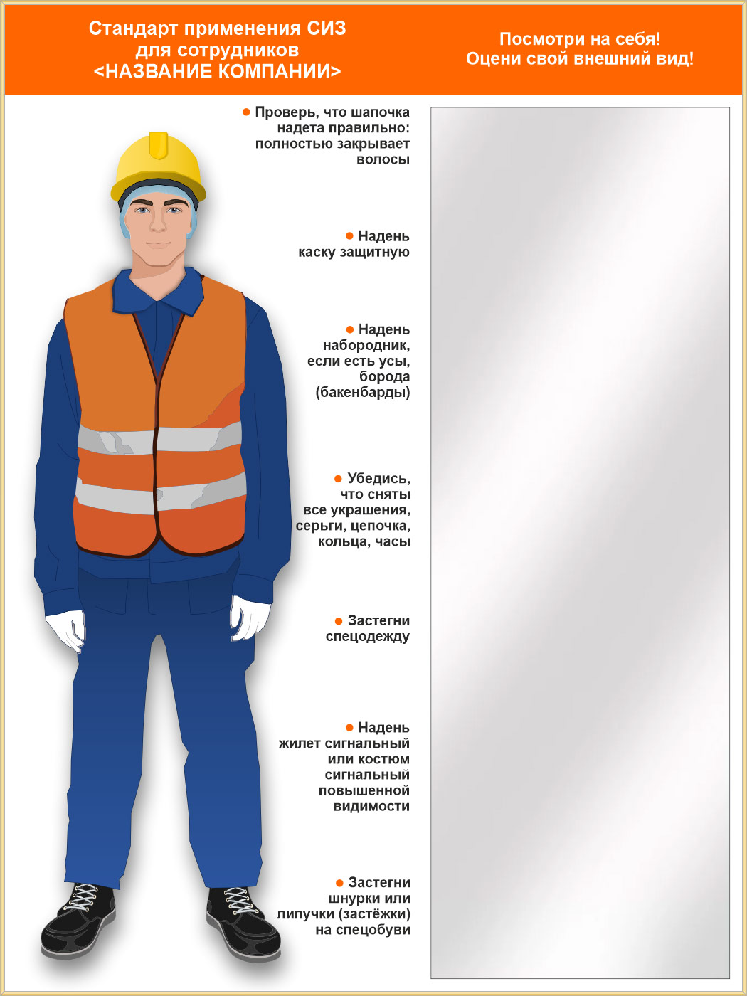 Стенд для демонстрации применения СИЗ с зеркалом, 1500х2000 мм в золотом багете (СПС-02.2-З) в Бердске купить