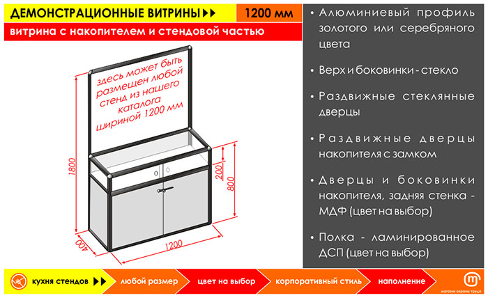 Витрина с накопителем и стендовой частью, 1200 мм в Бердске купить