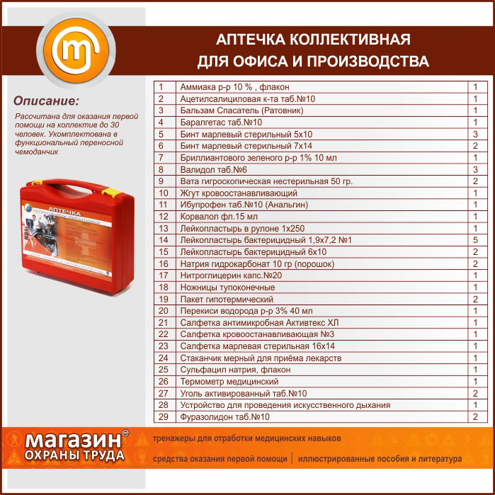 Аптечка КОЛЛЕКТИВНАЯ для офиса и производства (до 30 человек) - пластиковый чемодан в Бердске купить