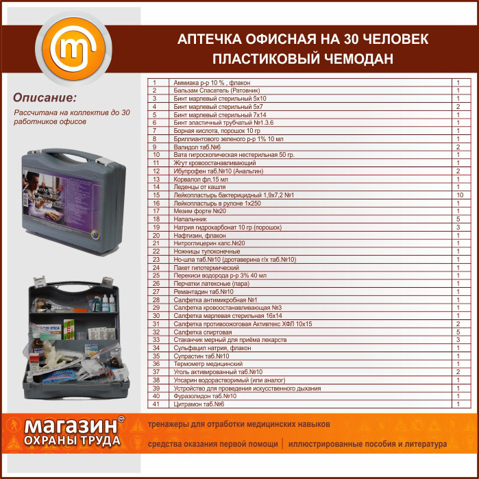 Аптечка ОФИСНАЯ (до 30 человек) - пластиковый чемодан в Бердске купить