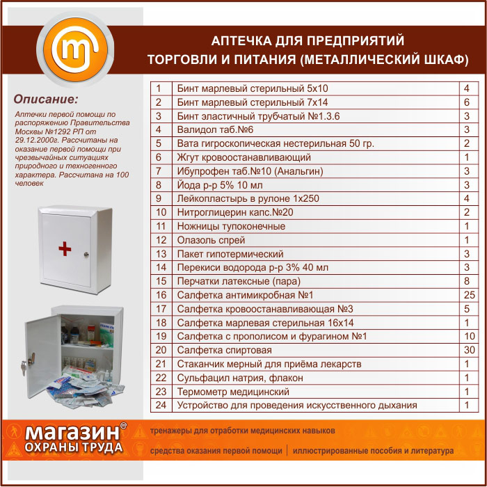 Аптечка для предприятий торговли и питания - (на 100 человек) - металлический шкаф в Бердске купить