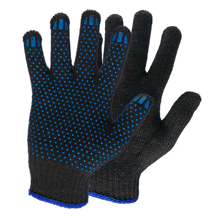 Перчатки Х/Б (5 нитей) черные с ПВХ "Точка" в Бердске купить