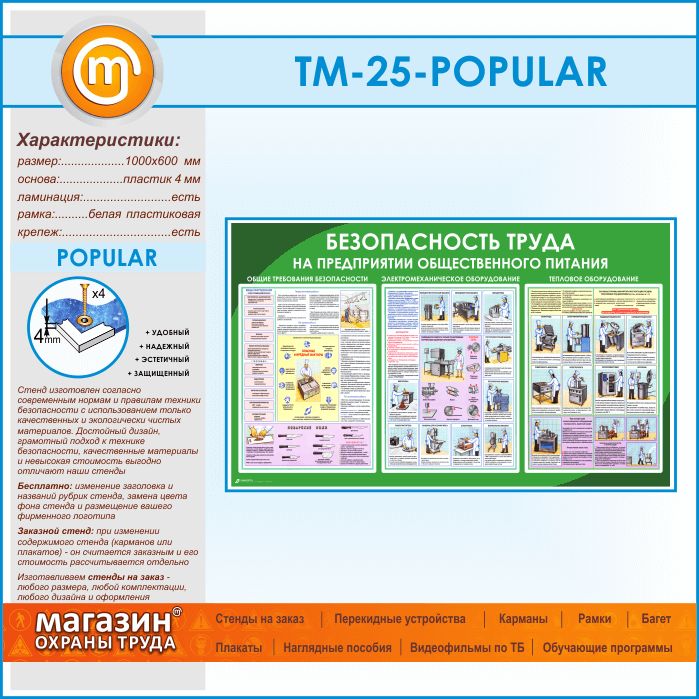 Стенд «Безопасность труда на предприятиях общественного питания» (TM-25-POPULAR)